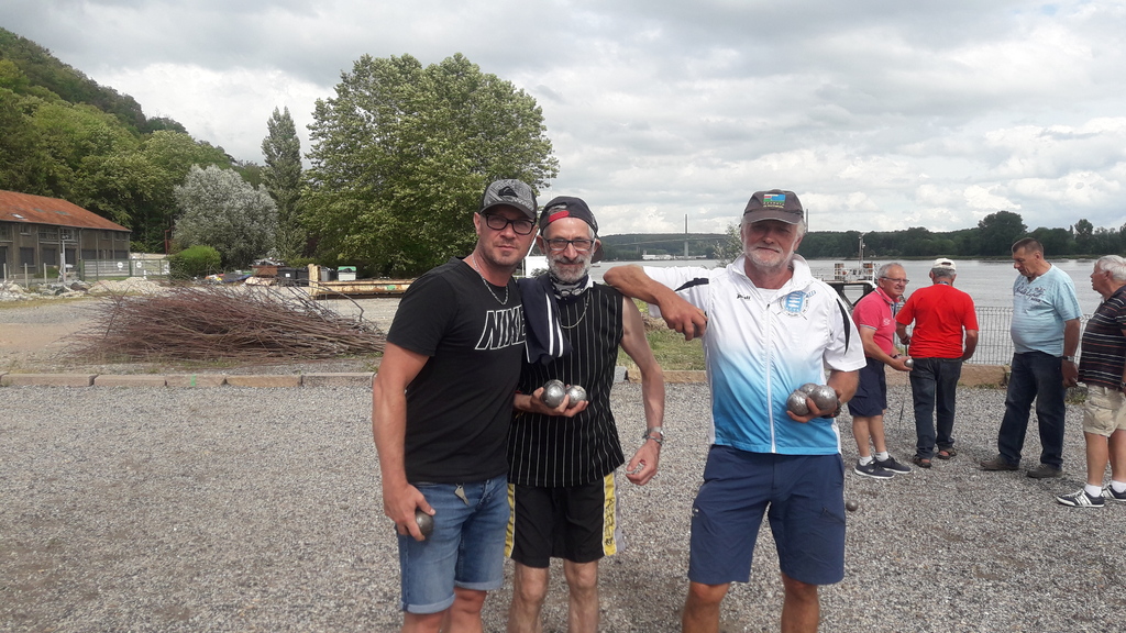 14h30 début du concours. C'est parti pour 4 parties. Il fait bon, François et Nicolas se prennent au jeu mais perdent d'un point. 2ème match, encore une défaite de peu. Nicolas pensait pouvoir aller ramer après la pétanque. Mais c'est long un tournoi. La pétanque c'est bien mais la Seine nous fait envie. A 14h30 elle était agitée, passage de nombreux cargos avec la renverse et vent. Mauvaises conditions pour le départ de Julien en skiff. Mais heureusement la Seine se calme pour qu'il finisse en paix sa sortie. Le concours continue avec une bonne ambiance des différentes équipes. 3ème partie avec à la clé une défaite. Nos rameurs n'ont plus la motivation surtout en voyant partir sur l'eau deux doubles et une yolette sur une Seine d'huile. 4ème partie, ils trouvent que la pétanque c'est long et abrègent leurs souffrances en perdant avec panache. Classement 18ème sur 20 équipes!