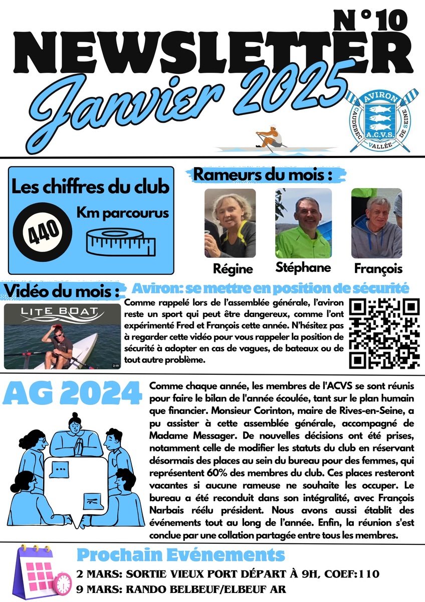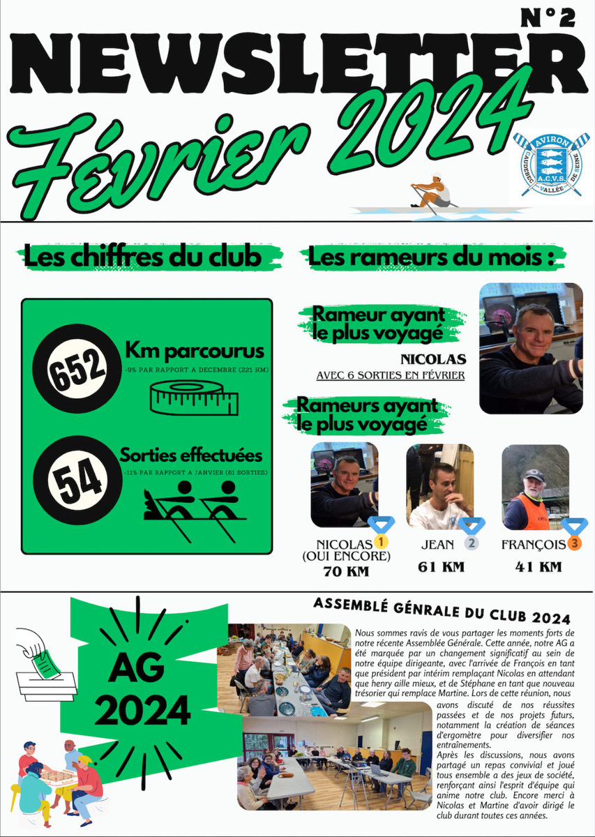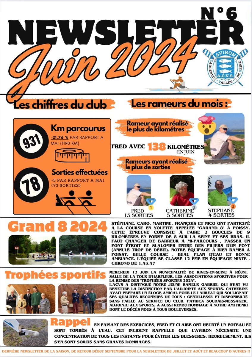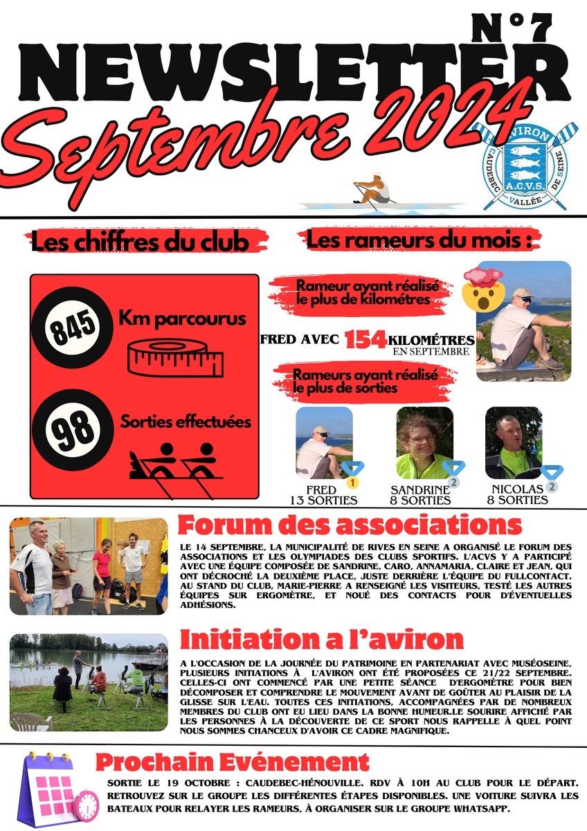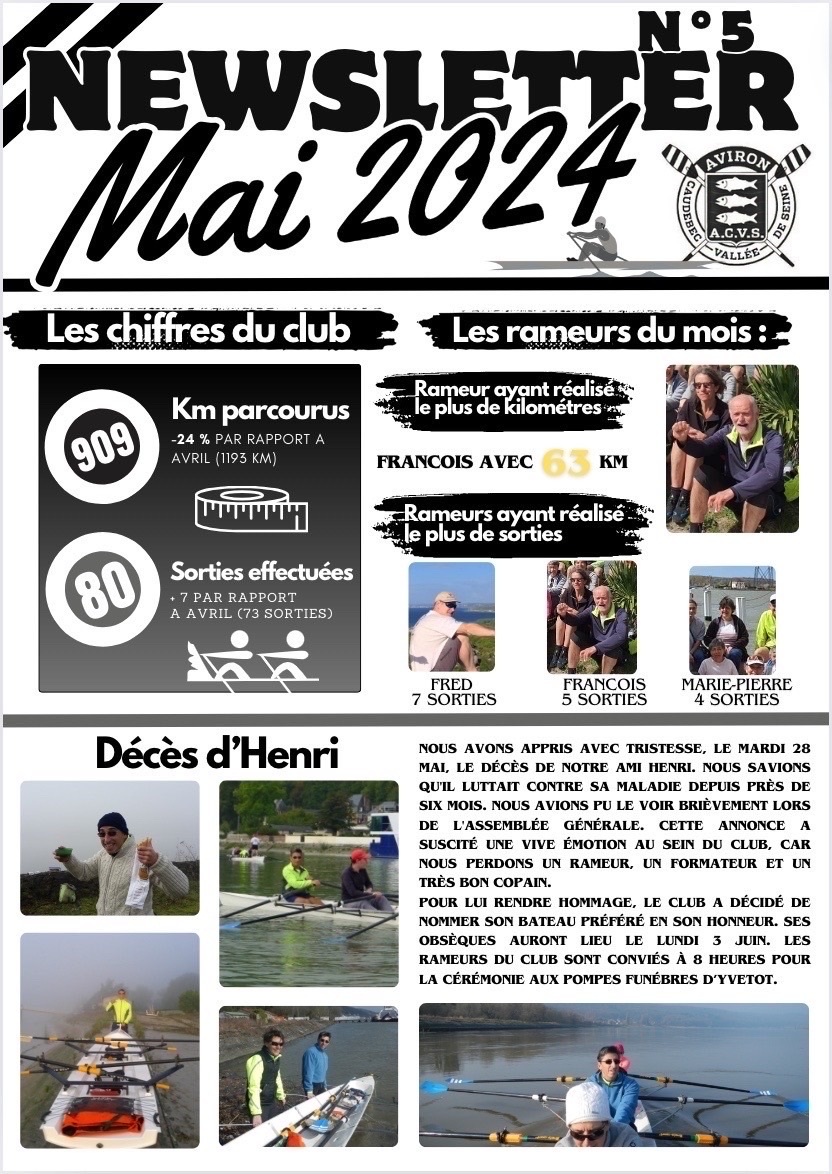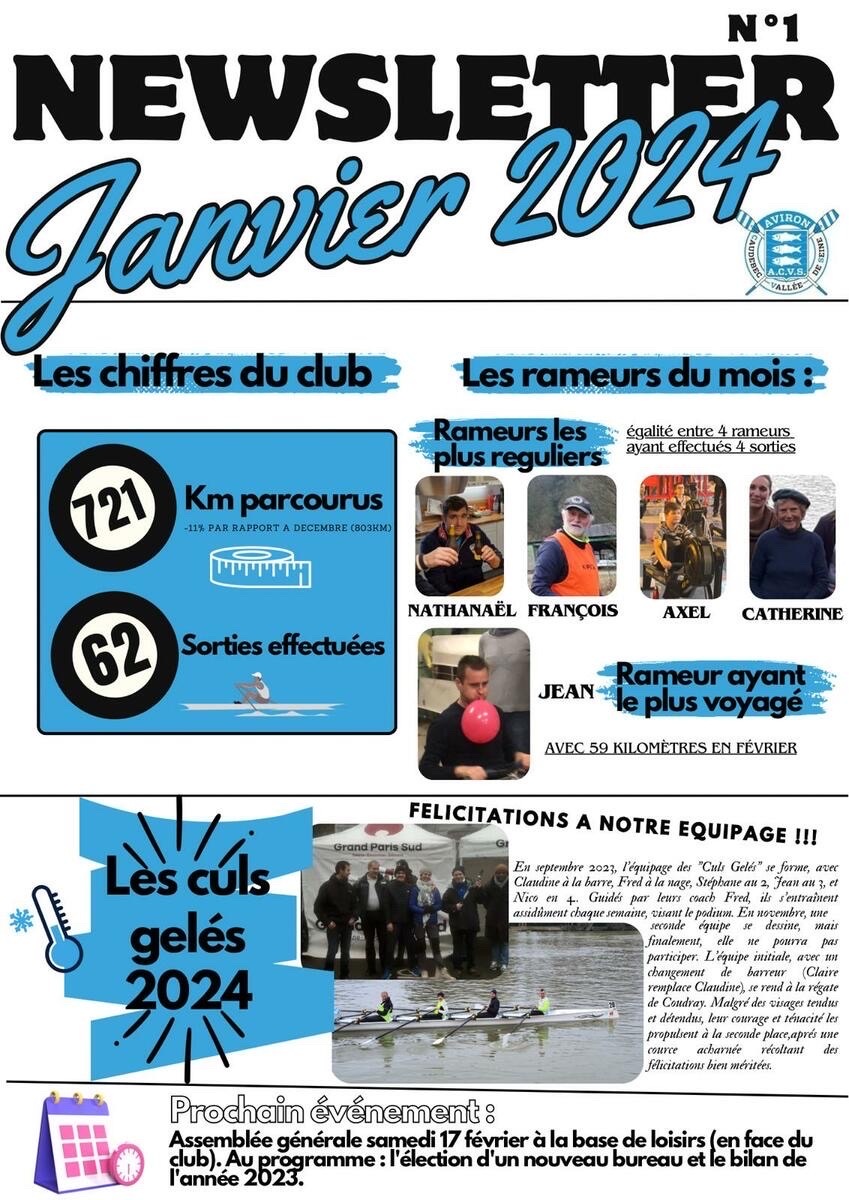 Les newsletter mensuel du club d'Aviron de Caudebec en caux depuis janvier 2024