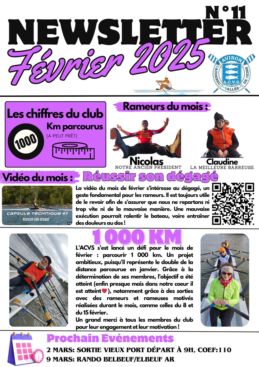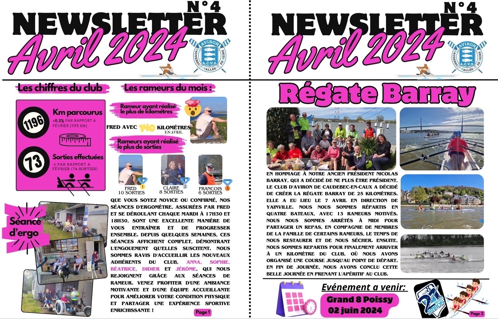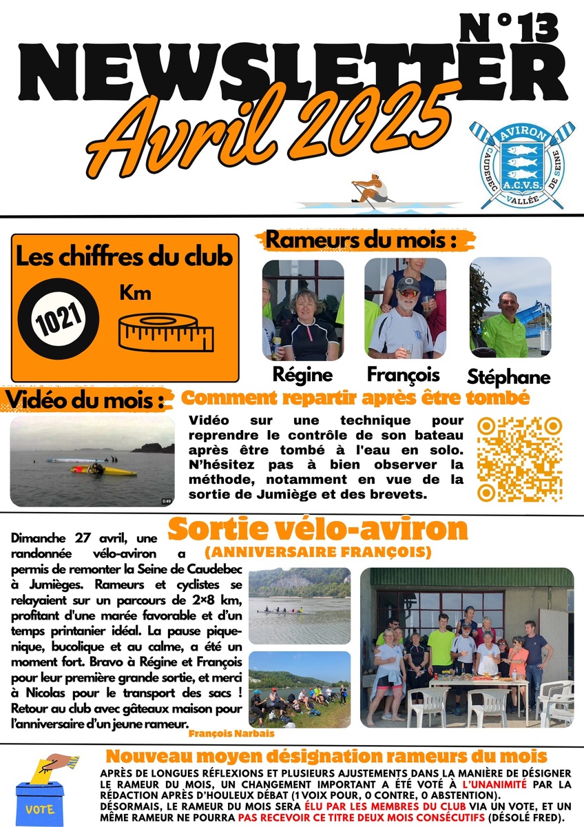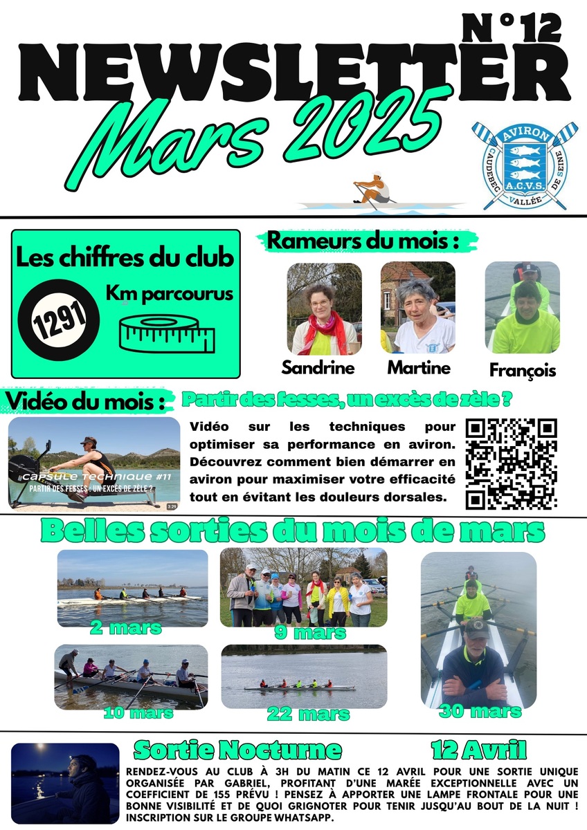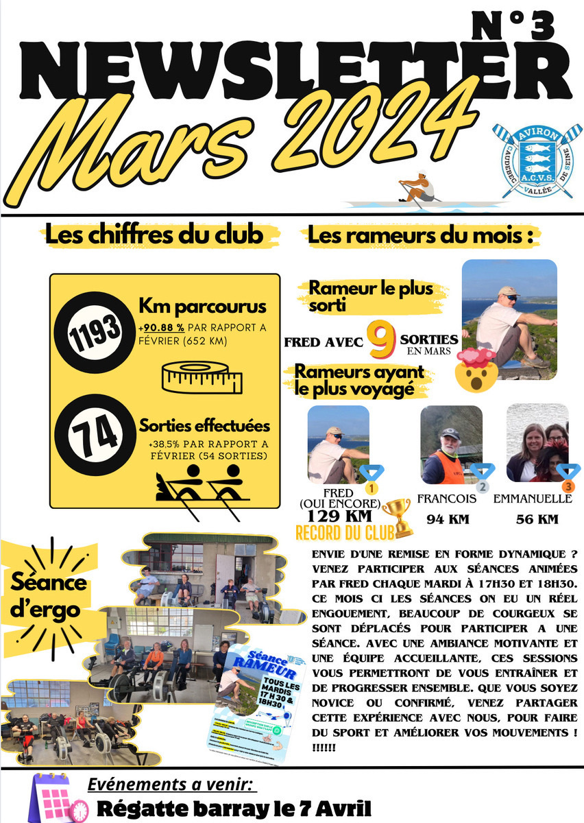 Les newsletter mensuel du club d'Aviron de Caudebec en caux depuis janvier 2024