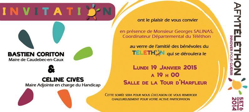 Le 19/01 à 19h00 pot à la salle de la tour d'Harfleur pour remercier les participants au téléthon.