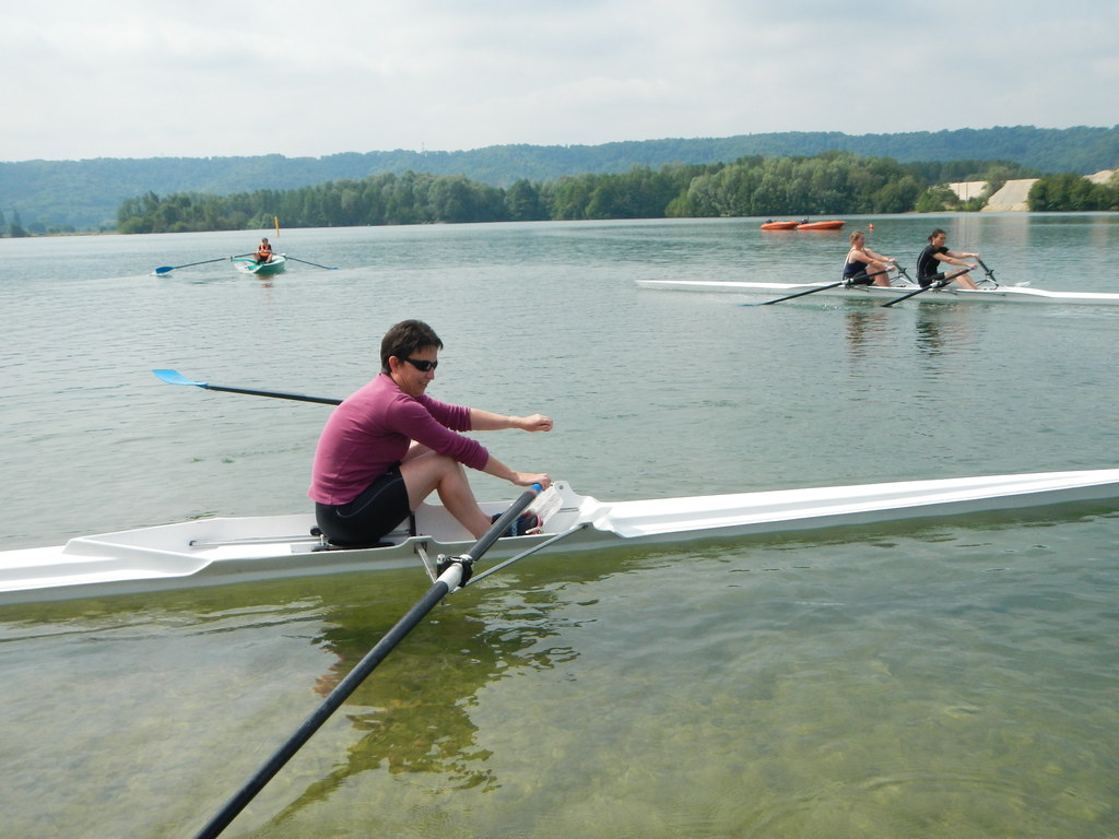 Bravo à tous ceux qui ont ramé en skiff et en double scull: Martine, François, Loic, Eric, Nathalie, Caroline, Anne, Fred, Antoine, Jérôme, Lucile, Particia, Vincent, Catherine, Géraldine. 1er chavirage pour Anne! C'est bien, c'est normal quand on commence à se détendre..