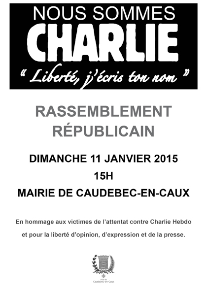 Rassemblement républicain dimanche 11 janvier à 15h00 à la mairie de Caudebec-en-Caux.