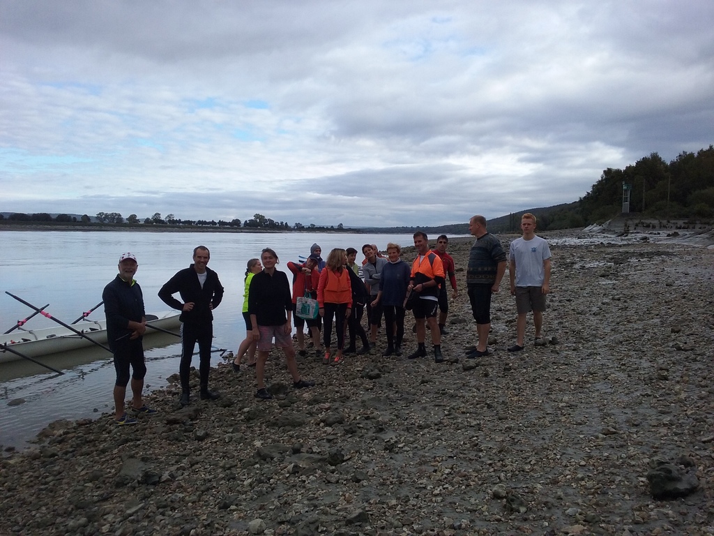 Rendez-vous au club à 9h00. Nous ne devons pas traîner pour avoir assez d'eau pour mettre les bateaux à l'eau car la Seine descend vite. 9h30 les 4 bateaux sont sur l'eau. 2 yolettes barrées, 1 yolette à quatre et 1 à trois rameurs(euses). La Seine est comme un lac, le courant et nos coups de rames nous portent jusqu'à Aizier . Petite pause sur une grève, thé, gâteaux. 10h50 la Seine gonfle mais le courant descend toujours. Nous remontons dans nos bateaux et descendons encore un peu la Seine avec le courant. La Seine commence à monter sur les rives et bientôt le flot monte à 11h20. Retour au club à 12h10 porté par le jus à 15km/h. Apéro au club avec les spécialités apportées par le club d'aviron belge de Seneffe .