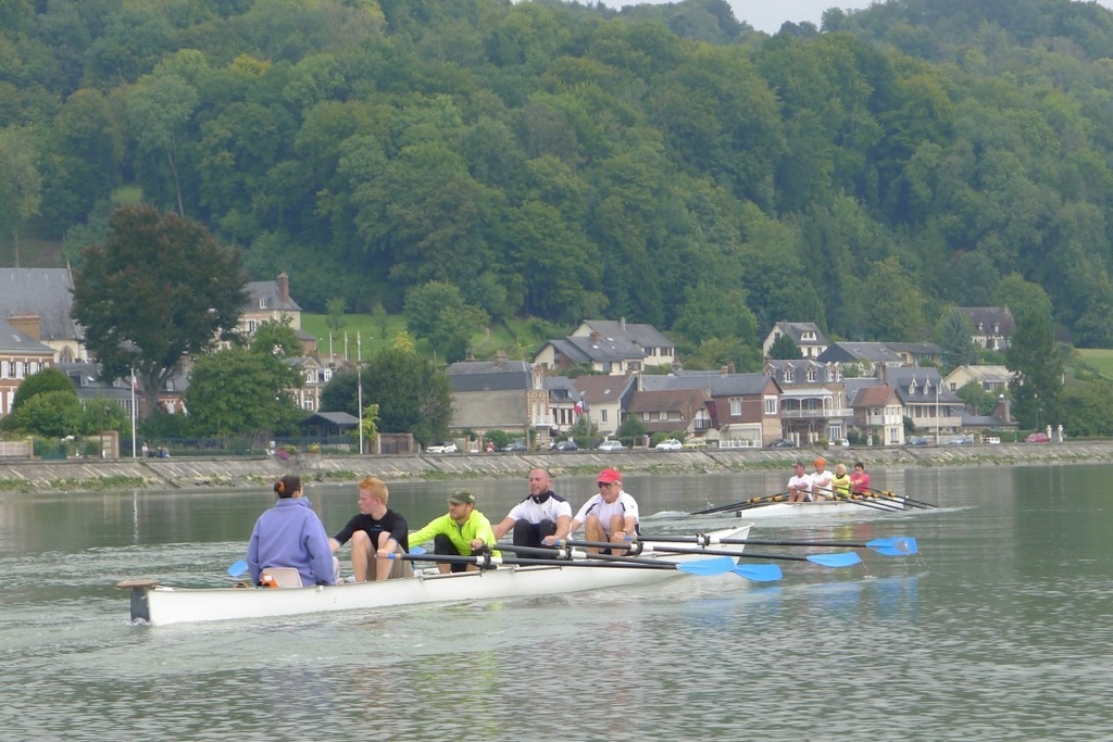 Rapidement les écarts se sont creusés et la Yolette, barrée de main de maître par Anne et avec pour rameurs Antoine et François et deux Belges au gabarit respectable, à bouclé le parcours en 43 minutes. Ceci après un mano à mano sans concession au niveau de Villequier avec le fleuron de notre flotte, un quatre sans barreur avec Nicolas à la nage. Félicitations au plus ancien du club et au plus jeune qui ont tout donné pour remporter cette régate, aidés par Ludovic qui a un palmarès dans son club de 3Y !