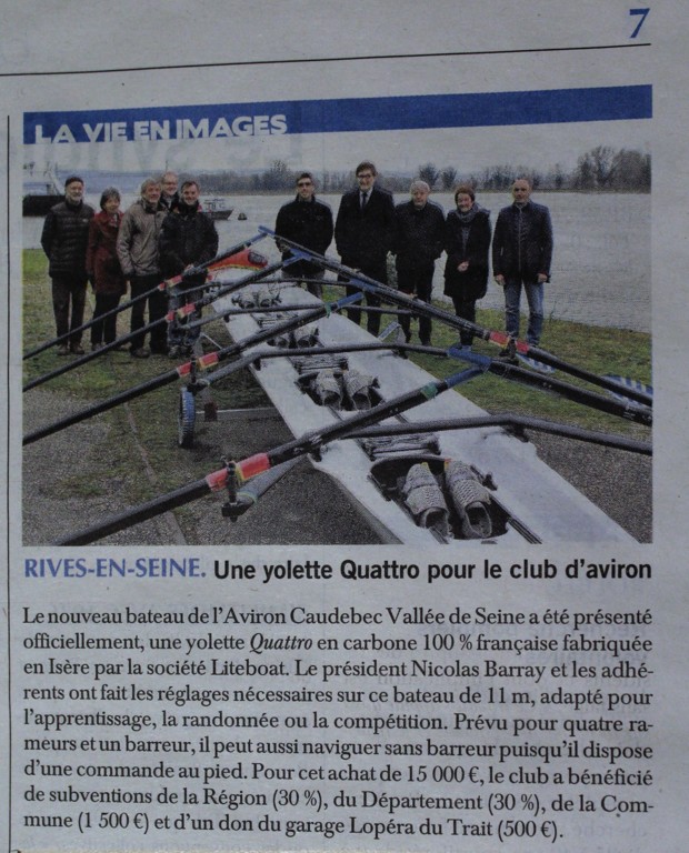 Samedi 19/01 nous avons inauguré notre nouvelle yolette en présence du maire de Rives-en-Seine, Bastien Coriton, de l'adjoint au sport Christian Capron, d'Annic Dessaux maire délégué de Saint Wandrille, et de M.Lopéra du garage du Trait.